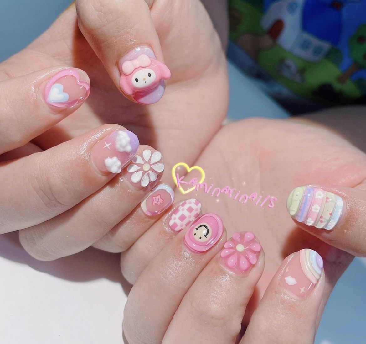 Mẫu nail hoạt hình với những hình ảnh đáng yêu và đầy màu sắc từ các nhân vật hoạt hình yêu thích, là lựa chọn tuyệt vời để thêm niềm vui và sáng tạo vào phong cách của bạn.